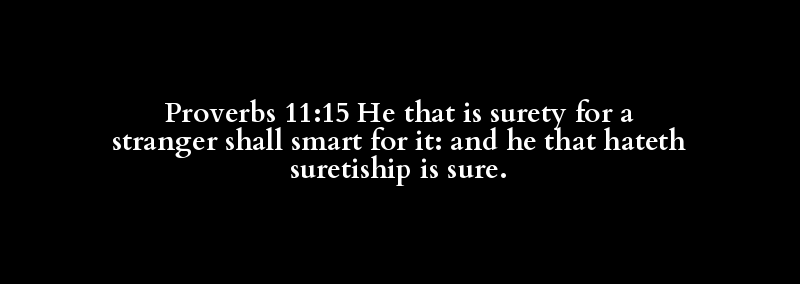 Proverbs 11:15 He that is surety for a stranger shall smart for it: and he that hateth suretiship is sure.