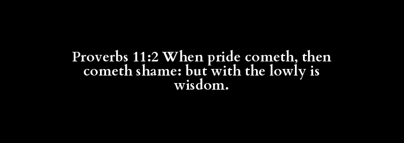 Proverbs 11:2 When pride cometh, then cometh shame: but with the lowly is wisdom.