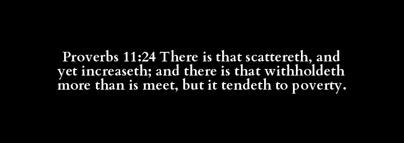 Proverbs 11:24 There is that scattereth, and yet increaseth; and there is that withholdeth more than is meet, but it tendeth to poverty.