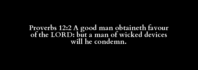 Proverbs 12:2 A good man obtaineth favour of the LORD: but a man of wicked devices will he condemn.