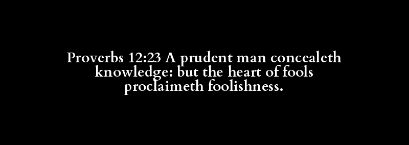 Proverbs 12:23 A prudent man concealeth knowledge: but the heart of fools proclaimeth foolishness.