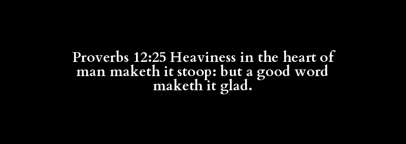 Proverbs 12:25 Heaviness in the heart of man maketh it stoop: but a good word maketh it glad.