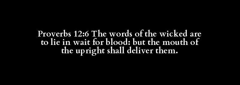 Proverbs 12:6 The words of the wicked are to lie in wait for blood: but the mouth of the upright shall deliver them.