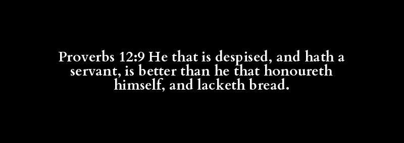 Proverbs 12:9 He that is despised, and hath a servant, is better than he that honoureth himself, and lacketh bread.