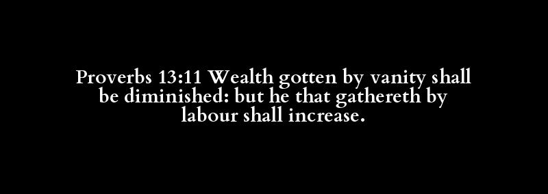 Proverbs 13:11 Wealth gotten by vanity shall be diminished: but he that gathereth by labour shall increase.