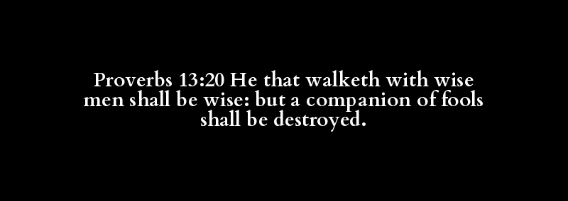 Proverbs 13:20 He that walketh with wise men shall be wise: but a companion of fools shall be destroyed.