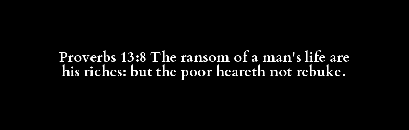 Proverbs 13:8 The ransom of a man's life are his riches: but the poor heareth not rebuke.