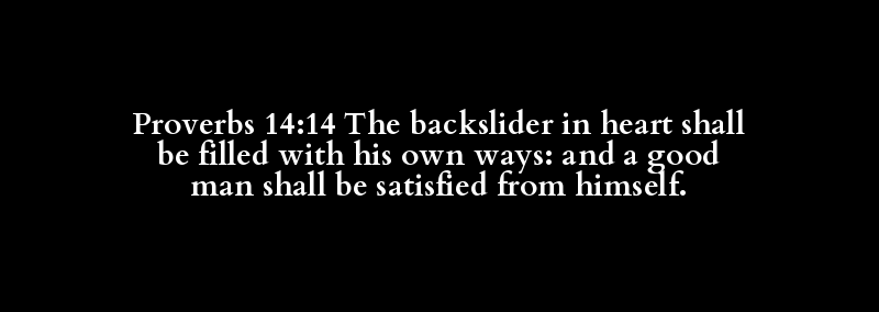 Proverbs 14:14 The backslider in heart shall be filled with his own ways: and a good man shall be satisfied from himself.