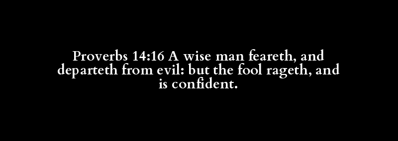 Proverbs 14:16 A wise man feareth, and departeth from evil: but the fool rageth, and is confident.