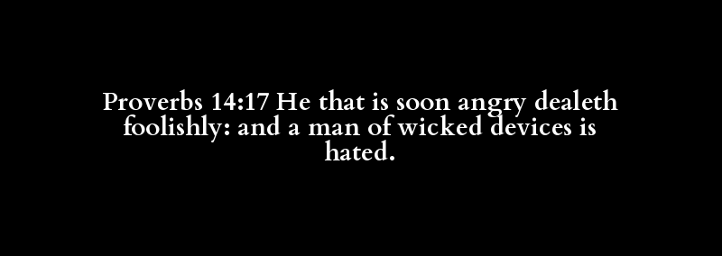 Proverbs 14:17 He that is soon angry dealeth foolishly: and a man of wicked devices is hated.
