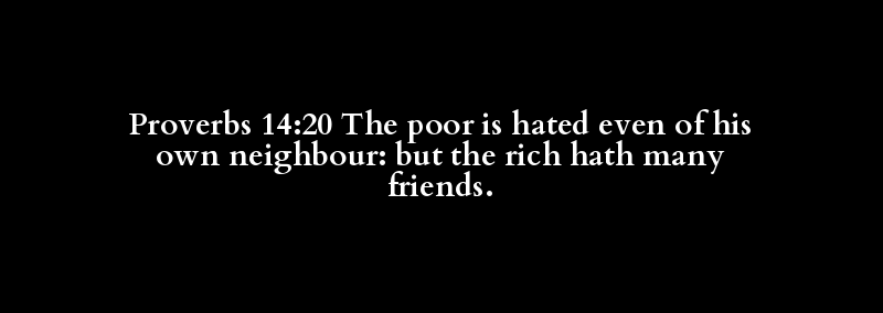 Proverbs 14:20 The poor is hated even of his own neighbour: but the rich hath many friends.