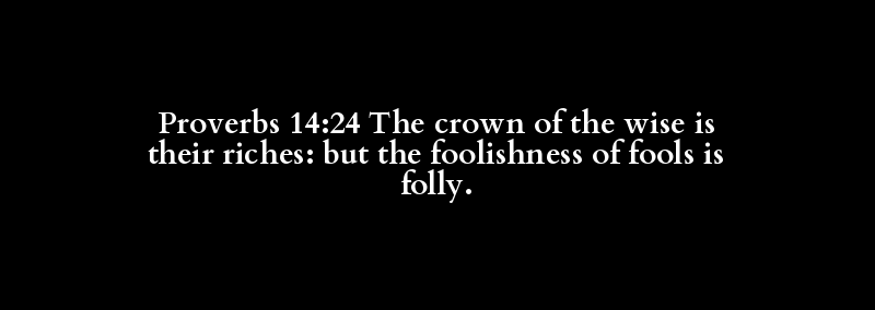 Proverbs 14:24 The crown of the wise is their riches: but the foolishness of fools is folly.