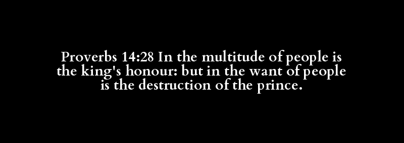 Proverbs 14:28 In the multitude of people is the king's honour: but in the want of people is the destruction of the prince.
