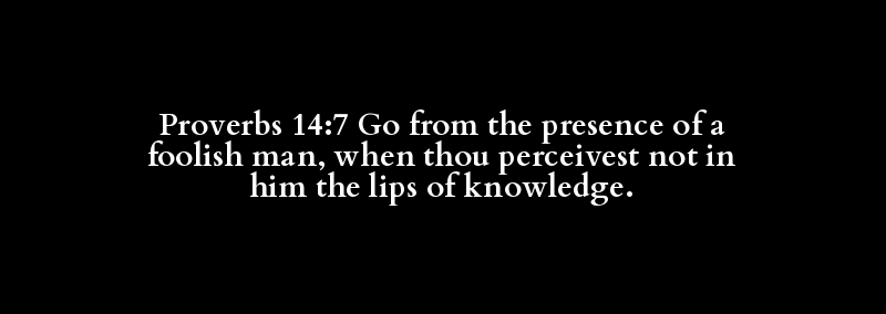 Proverbs 14:7 Go from the presence of a foolish man, when thou perceivest not in him the lips of knowledge.