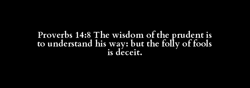 Proverbs 14:8 The wisdom of the prudent is to understand his way: but the folly of fools is deceit.