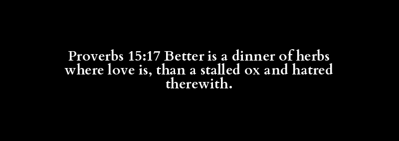 Proverbs 15:17 Better is a dinner of herbs where love is, than a stalled ox and hatred therewith.