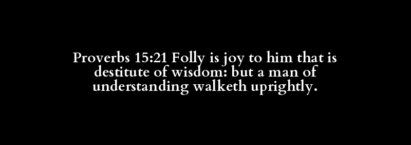Proverbs 15:21 Folly is joy to him that is destitute of wisdom: but a man of understanding walketh uprightly.