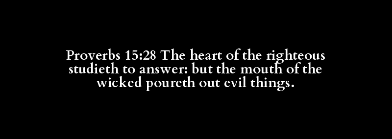 Proverbs 15:28 The heart of the righteous studieth to answer: but the mouth of the wicked poureth out evil things.