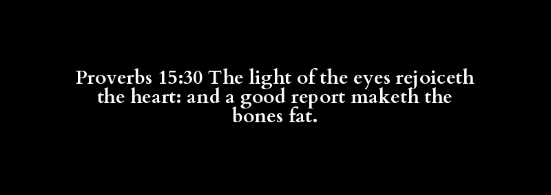 Proverbs 15:30 The light of the eyes rejoiceth the heart: and a good report maketh the bones fat.