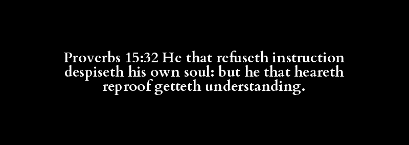 Proverbs 15:32 He that refuseth instruction despiseth his own soul: but he that heareth reproof getteth understanding.