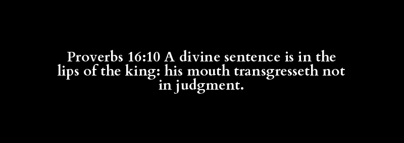 Proverbs 16:10 A divine sentence is in the lips of the king: his mouth transgresseth not in judgment.