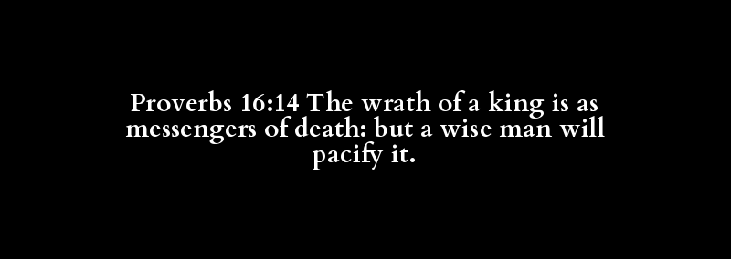 Proverbs 16:14 The wrath of a king is as messengers of death: but a wise man will pacify it.