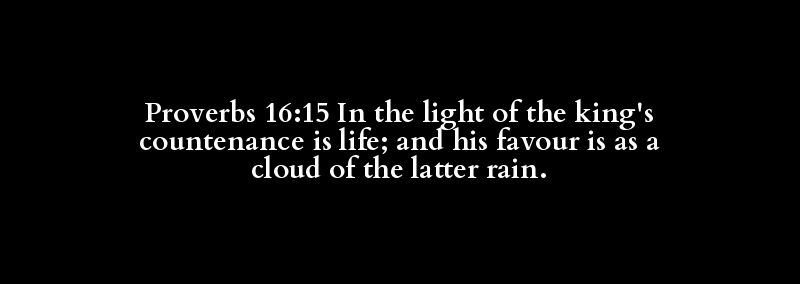 Proverbs 16:15 In the light of the king's countenance is life; and his favour is as a cloud of the latter rain.