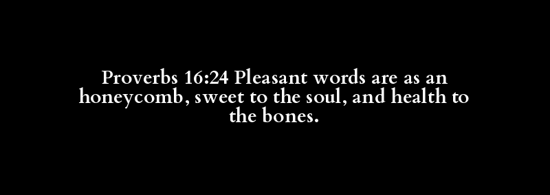 Proverbs 16:24 Pleasant words are as an honeycomb, sweet to the soul, and health to the bones.