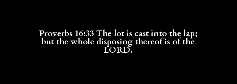 Proverbs 16:33 The lot is cast into the lap; but the whole disposing thereof is of the LORD.