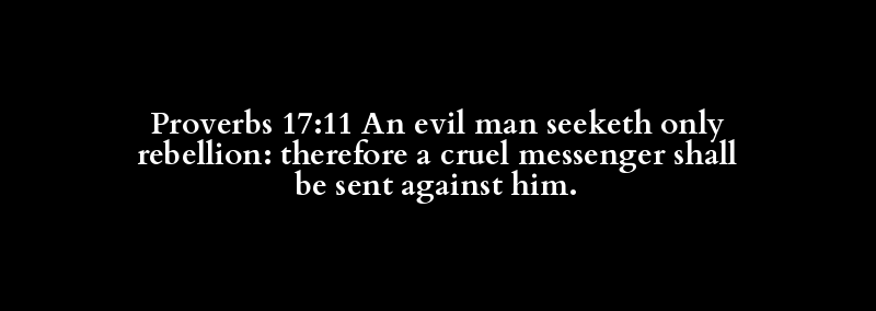 Proverbs 17:11 An evil man seeketh only rebellion: therefore a cruel messenger shall be sent against him.
