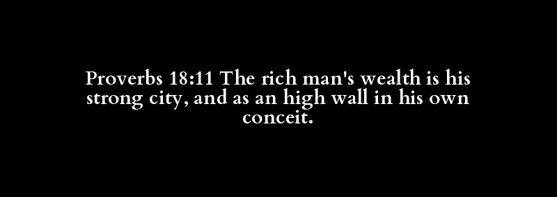 Proverbs 18:11 The rich man's wealth is his strong city, and as an high wall in his own conceit.