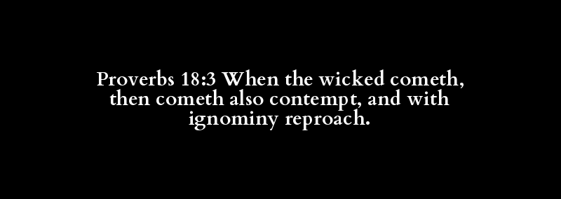 Proverbs 18:3 When the wicked cometh, then cometh also contempt, and with ignominy reproach.