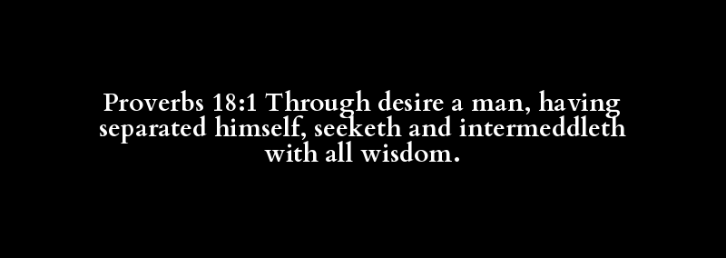 Proverbs 18:1 Through desire a man, having separated himself, seeketh and intermeddleth with all wisdom.