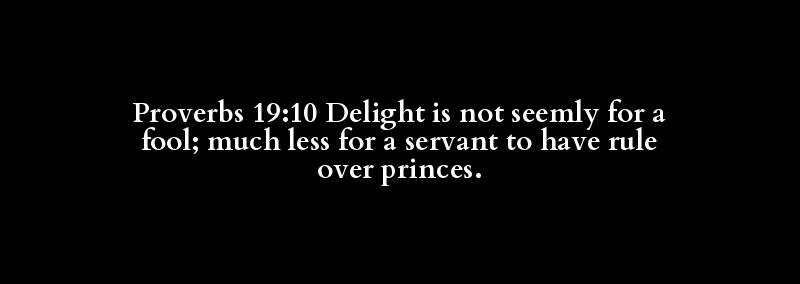 Proverbs 19:10 Delight is not seemly for a fool; much less for a servant to have rule over princes.