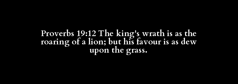 Proverbs 19:12 The king's wrath is as the roaring of a lion; but his favour is as dew upon the grass.
