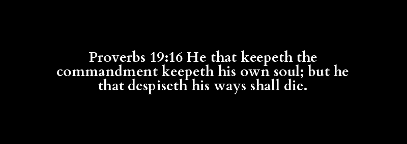 Proverbs 19:16 He that keepeth the commandment keepeth his own soul; but he that despiseth his ways shall die.