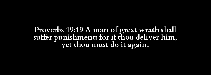 Proverbs 19:19 A man of great wrath shall suffer punishment: for if thou deliver him, yet thou must do it again.