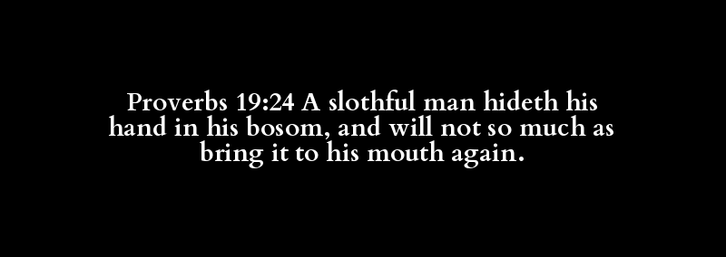 Proverbs 19:24 A slothful man hideth his hand in his bosom, and will not so much as bring it to his mouth again.
