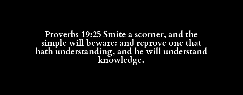 Proverbs 19:25 Smite a scorner, and the simple will beware: and reprove one that hath understanding, and he will understand knowledge.