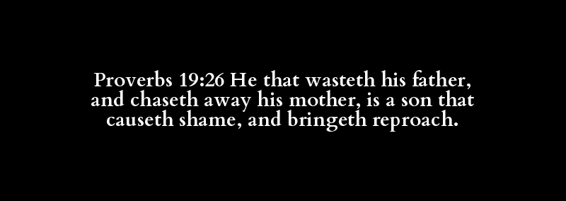 Proverbs 19:26 He that wasteth his father, and chaseth away his mother, is a son that causeth shame, and bringeth reproach.