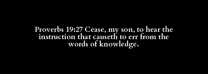 Proverbs 19:27 Cease, my son, to hear the instruction that causeth to err from the words of knowledge.