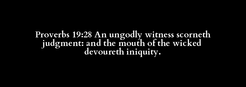 Proverbs 19:28 An ungodly witness scorneth judgment: and the mouth of the wicked devoureth iniquity.