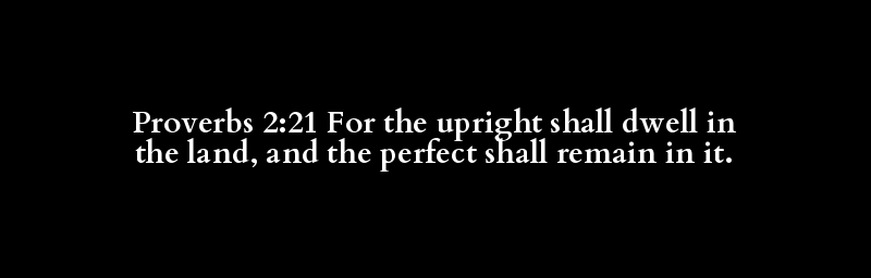 Proverbs 2:21 For the upright shall dwell in the land, and the perfect shall remain in it.