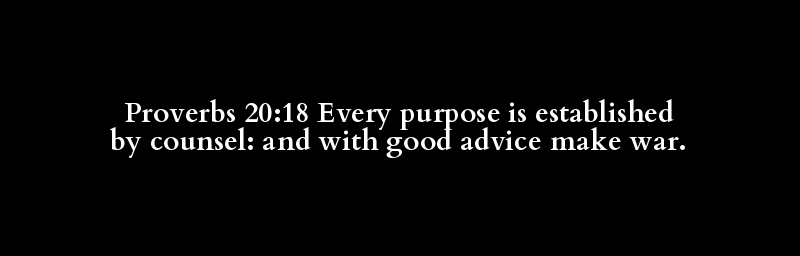 Proverbs 20:18 Every purpose is established by counsel: and with good advice make war.