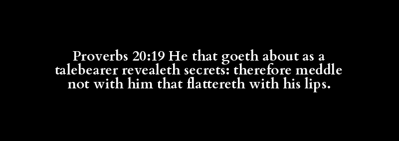 Proverbs 20:19 He that goeth about as a talebearer revealeth secrets: therefore meddle not with him that flattereth with his lips.