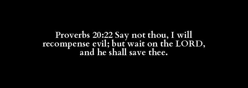 Proverbs 20:22 Say not thou, I will recompense evil; but wait on the LORD, and he shall save thee.