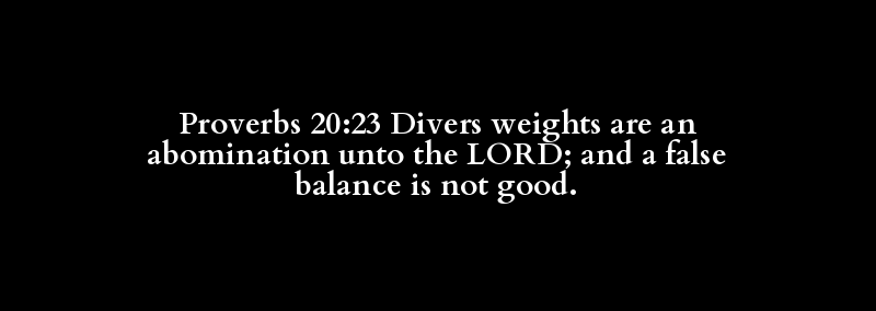 Proverbs 20:23 Divers weights are an abomination unto the LORD; and a false balance is not good.