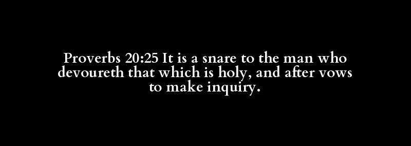 Proverbs 20:25 It is a snare to the man who devoureth that which is holy, and after vows to make inquiry.