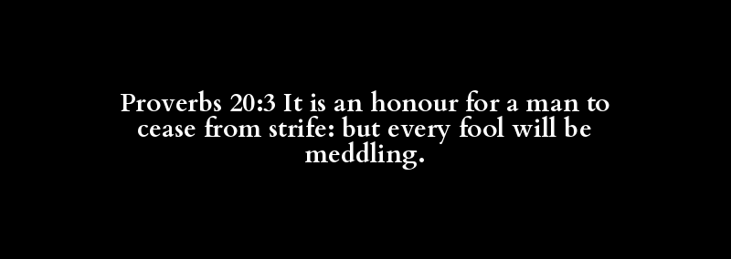 Proverbs 20:3 It is an honour for a man to cease from strife: but every fool will be meddling.