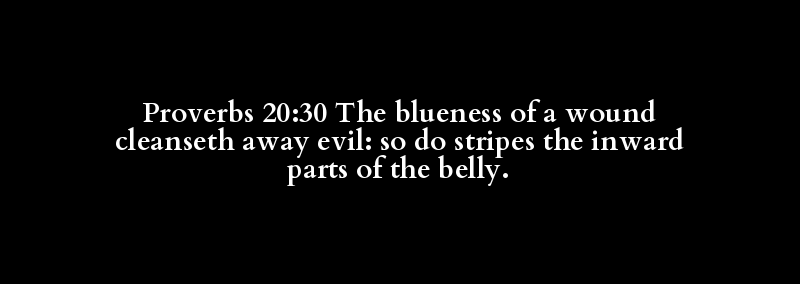 Proverbs 20:30 The blueness of a wound cleanseth away evil: so do stripes the inward parts of the belly.
